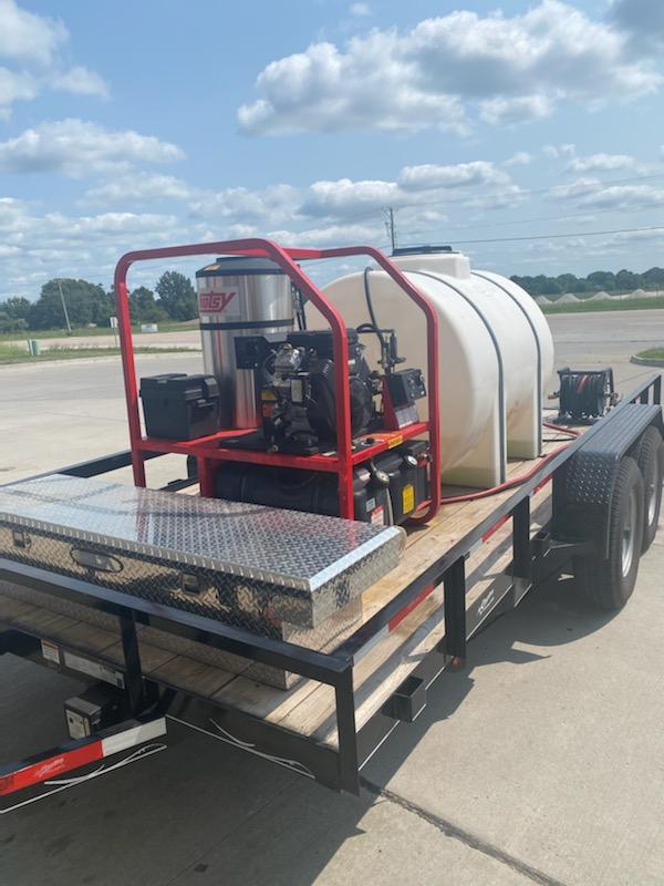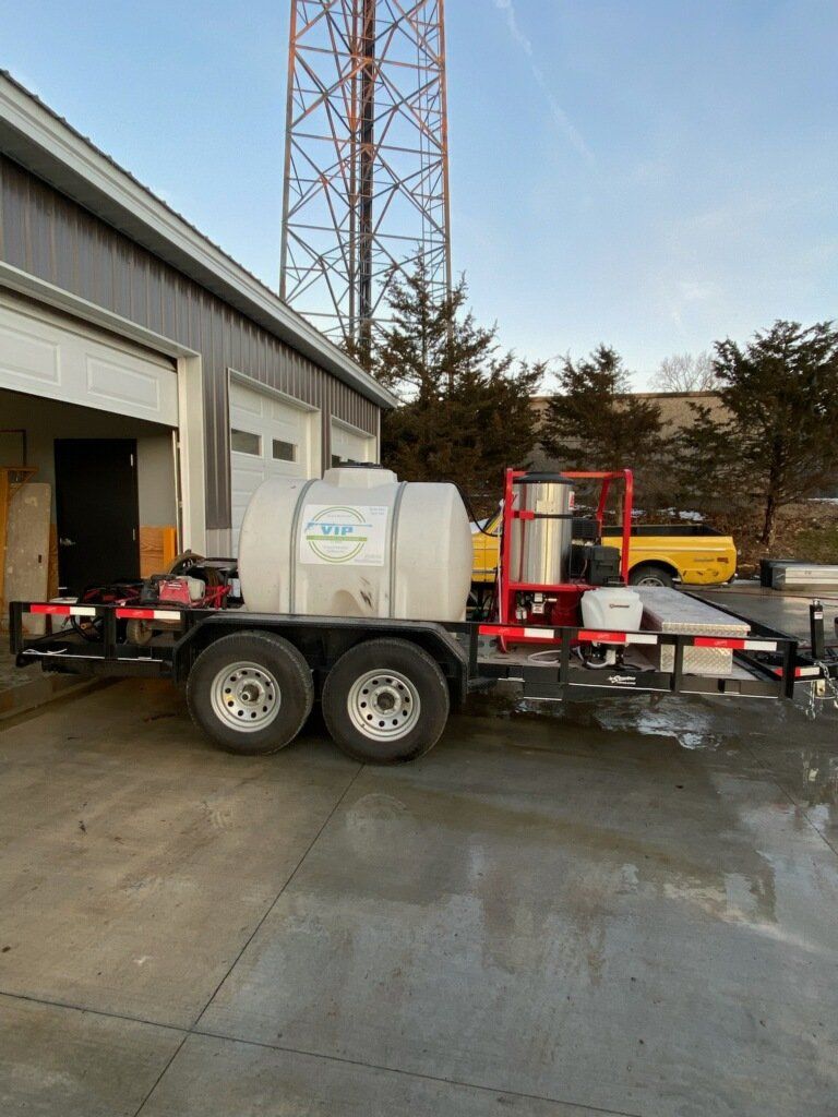 - VIP is a mobile, 16-foot, dual axel trailer equipped with a gas powered 18 hp Vanguard power washer (3000 psi), coupled with a Hotsy 1260 diesel powered water/solution heater (up to 220 degrees Fahrenheit). The trailer holds a 525-gallon water holding tank, several hundred feet of pressurized hose, various environmentally safe cleaning chemicals and solutions as well as numerous pressure wands to fit all needs.